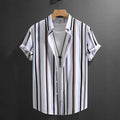 Summer Men's Fashion Trend Stripes Short Sleeve Stand Collar Shirt